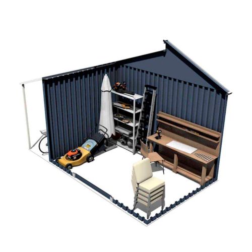 La caseta jardín Marlow está fabricada en chapa de acero galvanizado con paredes de 0,25 mm de grosor y pre-tinte en caliente. Su diseño incorpora paneles laterales nervados que brindan robustez a la construcción. Una característica destacada de este modelo es su refugio lateral abierto, ideal para aquellos objetos que requieran mayor ventilación, o simplemente para acumular leña. El tejado a dos aguas no solo es un detalle estético, sino que tiene una función esencial: evitar la acumulación de agua y posibles filtraciones. Junto con el desagüe pluvial, se garantiza un drenaje eficaz del agua de lluvia, prolongando la vida útil de la caseta. La iluminación y ventilación interior se realiza a través del tragaluz de policarbonato que permite el paso de luz natural y reduce la condensación. Esta combinación asegura un espacio fresco, luminoso y confortable. Tiene una puerta corredera doble que puede cerrarse con candado (no incluido). No incluye suelo.