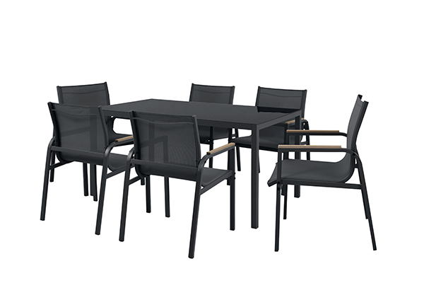 Este conjunto esta pensado para exteriores y esta compuesto por :6 sillas y 1 mesa.