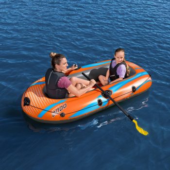 - Contenido: 1 bote, 1 par de remos, 1 bomba de pie, 1 parche de reparación