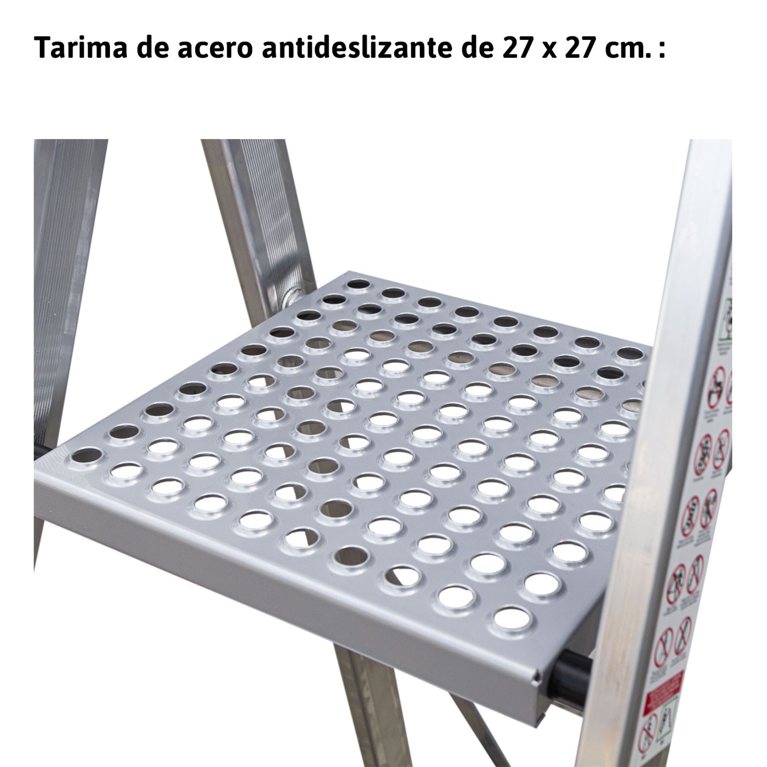 • Plataforma de acero antideslizante de 27×27 cm.
