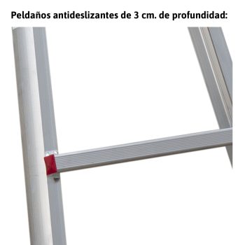 - Peldaños antideslizantes de 3 cm de profundidad.