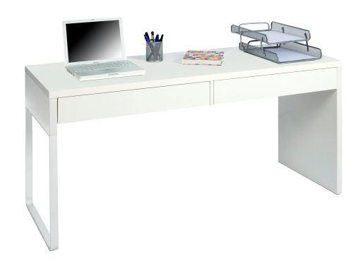 Esta mesa de escritorio reversible cuenta con 2 cajones y esta acabada en color Blanco artik.