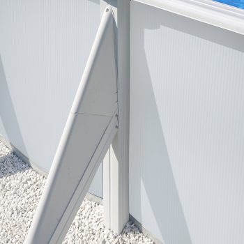 – Sistema de sujeción: Mediante 4 contrafuertes situados en la parte recta de la piscina (2 a cada lado). Cuentan con un embellecedor de PVC para una mejor estética y visualización.