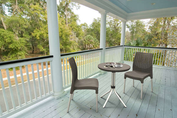 Añada un toque de clase británica a su piscina o patio, con el juego bistró Chelsea. Este juego viene con dos elegantes sillas curvadas y una mesa redonda que combina. Relájese con sus amigos o disfrute una taza de té en una tarde tranquila en su patio, con este conjunto versátil y moderno. Las sillas cuentan con una combinación elegante de materiales: resina con efecto de mimbre y patas metálicas. La tapa de la mesa está fabricada de un material robusto y durable, protegido contra rayos ultravioleta para que no se decolore o blanquee bajo el sol fuerte.