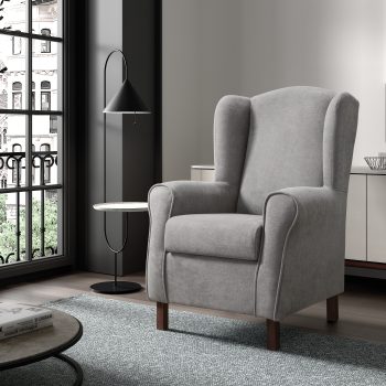 El sillón fijo Simphony cuenta con una estructura de madera de pino y un precioso tapizado tela DINO Easy Clean.